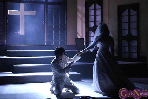 純白のウエディングドレスの高垣彩陽さんの隣にタキシードで並んだ秋元龍太郎さんは、新郎のユーキ役を演じてみて、「自分は年上が好きだなと改めて思いました。」と少し同様した様子を見せながら笑った。そして、「サスペンスなので周りの人物がウソで塗り固めた心理戦を演じている中で、僕はストレートな感情をぶつけていくことを心がけました。」と作品へのアプローチを語った。