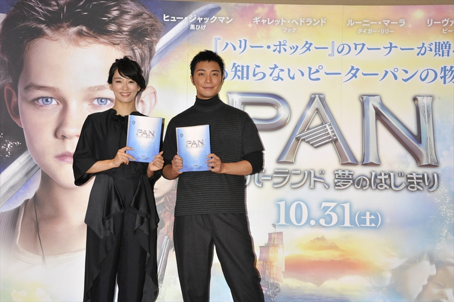 この『PAN ~ネバーランド、夢のはじまり~』について、「映像もすごいですし、実は…僕も泣いちゃったくらいの感動作でした。子供のころに見ていたあのピーターパンが今こうして映画になっていると思うと、昔の思い出を投影させながらとても不思議な気持ちになります。是非、ひとりでも多くの方に、この誰も知らない“ピーターパン”の魅力を知って貰いたいです。(成宮寛貴)』、「私も本当に映像が綺麗で、感動しました。もともと原作「ピーターパン」のファンだったのですが、今回はまったく違う作品に仕上がっていて、とてもカラフルで素敵な作品に仕上がっています。原作の“ピーターパン”は自由奔放な少年っていう感じですが、今回のピーターはけなげに頑張る姿がとても可愛らしい男の子で、女の子なら誰でも放っておけない、私の演じるタイガー・リリーのように、いつも支えてあげたくなってしまうキャラクターだと思います。壮大で感動的なファンタジー作品、是非、大人の女性に見て貰いたいですね。(水川あさみ)』と見どころと、感動ポイントをそれぞれ語った。