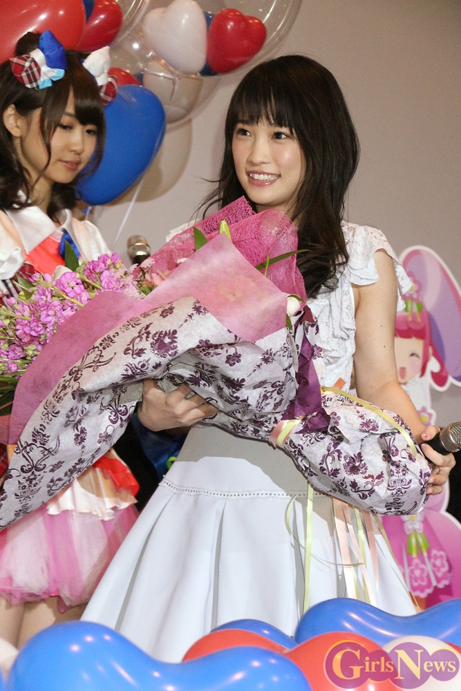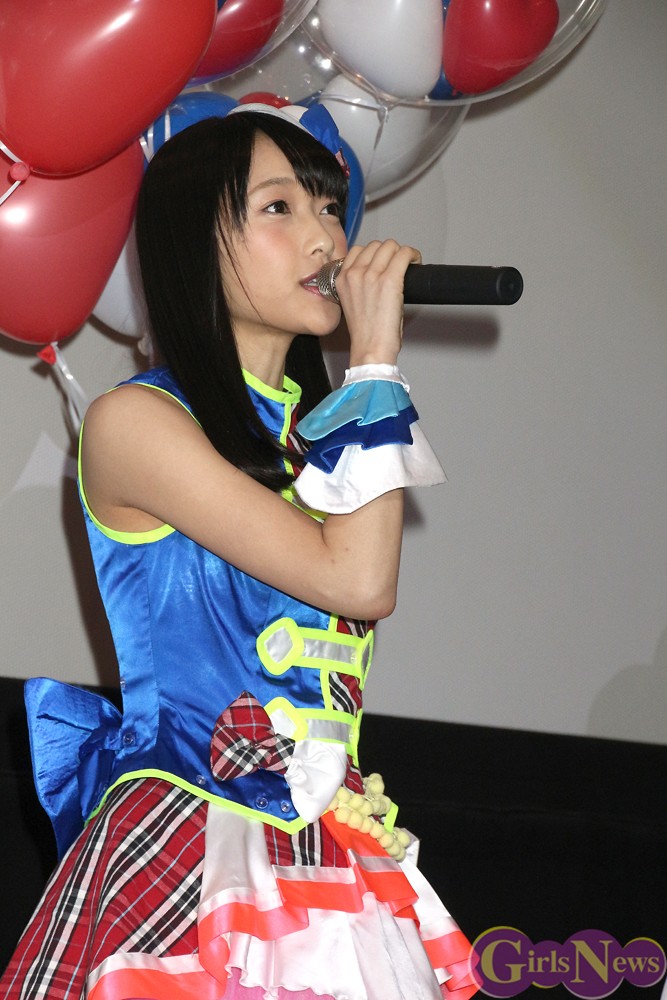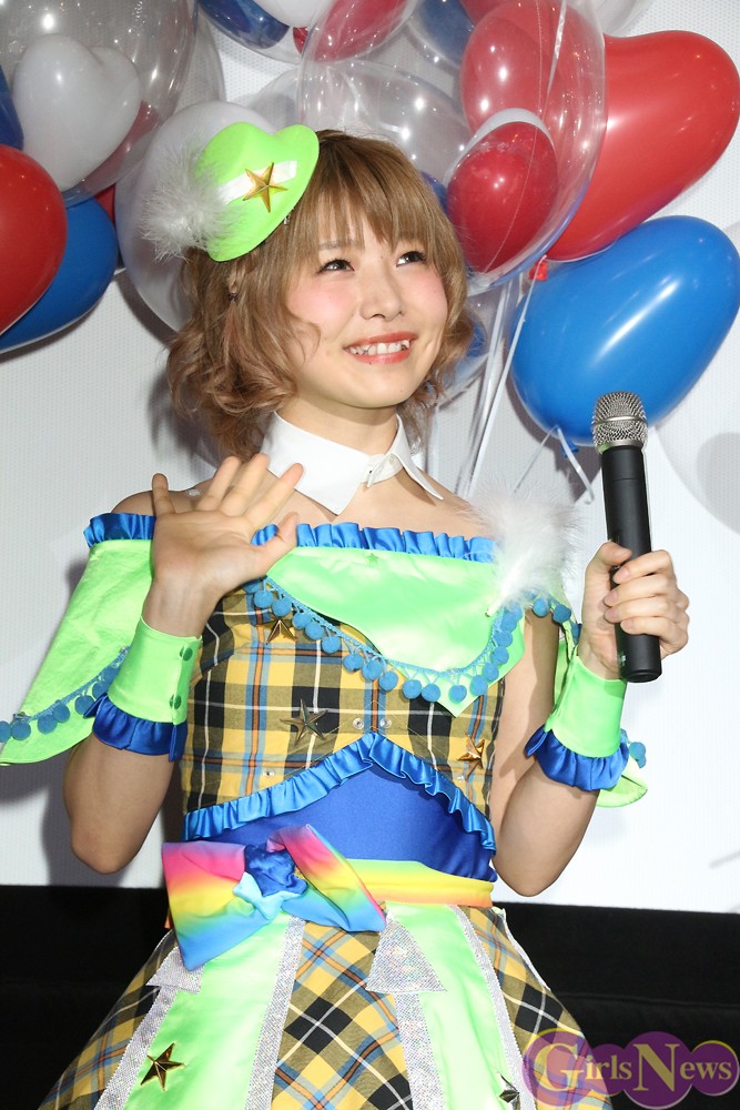 ゲストとして祝福の花束を持って登場した川栄さんは「声優は声だけで演じるので難しい。緊張しました」と収録を振り返った。アフレコは別々に行なわれたため、初対面となった「i☆Ris」メンバーに「みなさん、地声なんですね!ホントに声が可愛くて感動しました」と驚いた。