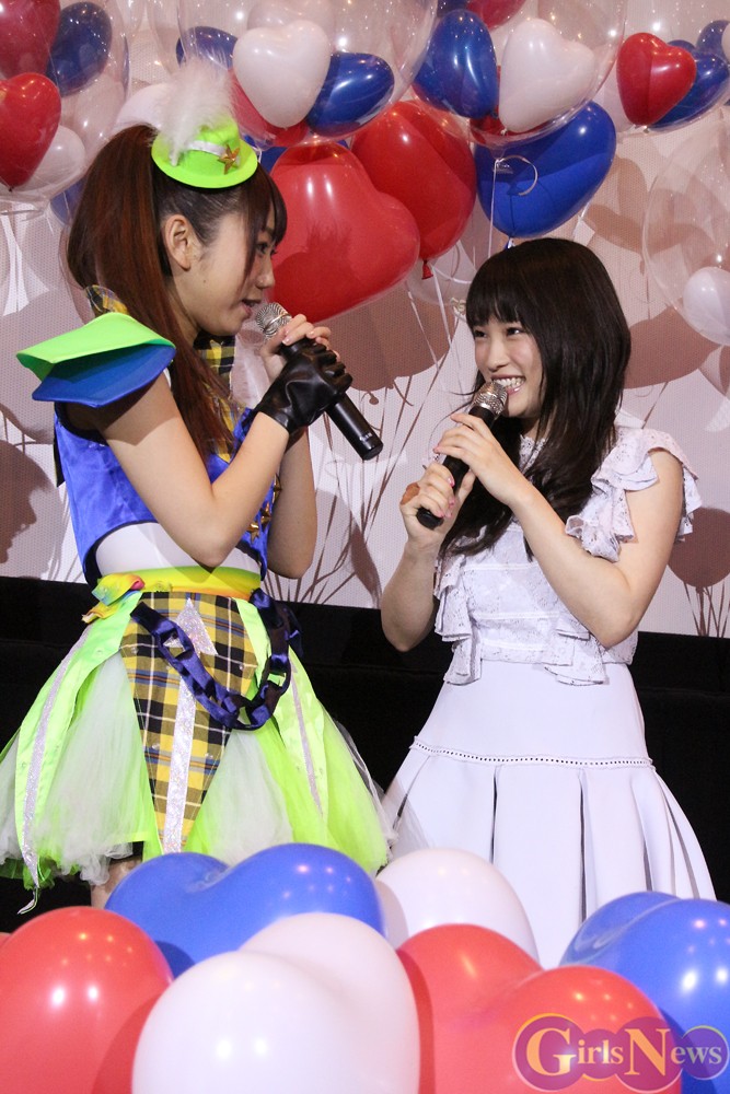 i☆Risのメンバーも川栄さんの登場に大喜びで、リーダーの山北さんは「カワエイなぁ」と頬を緩ませた。映画の内容にちなんで”最近友人に助けられたことは?”という質問に「私は常に助けられてばかりなんで助けてください」と川栄さんが山北さんに頼ると、「私のほうがきょうのステージでセンターに立っている川栄さんの可愛さに助けられています。すごく二の腕がいい。神アイドルの二の腕です!」と山北さんはニヤニヤ。「申し訳ない。ありがとうございます」と、熱い視線を感じた川栄さんはタジタジだった。