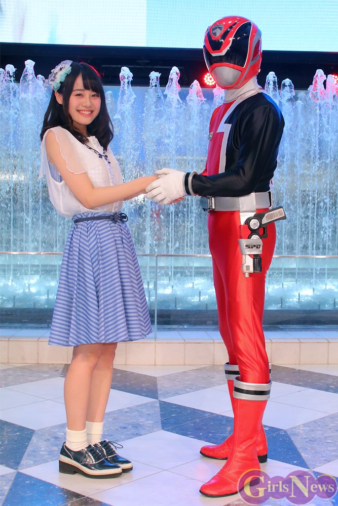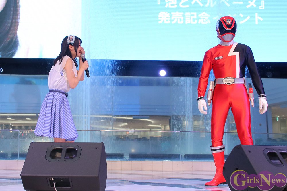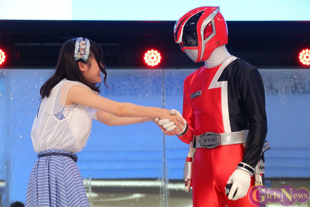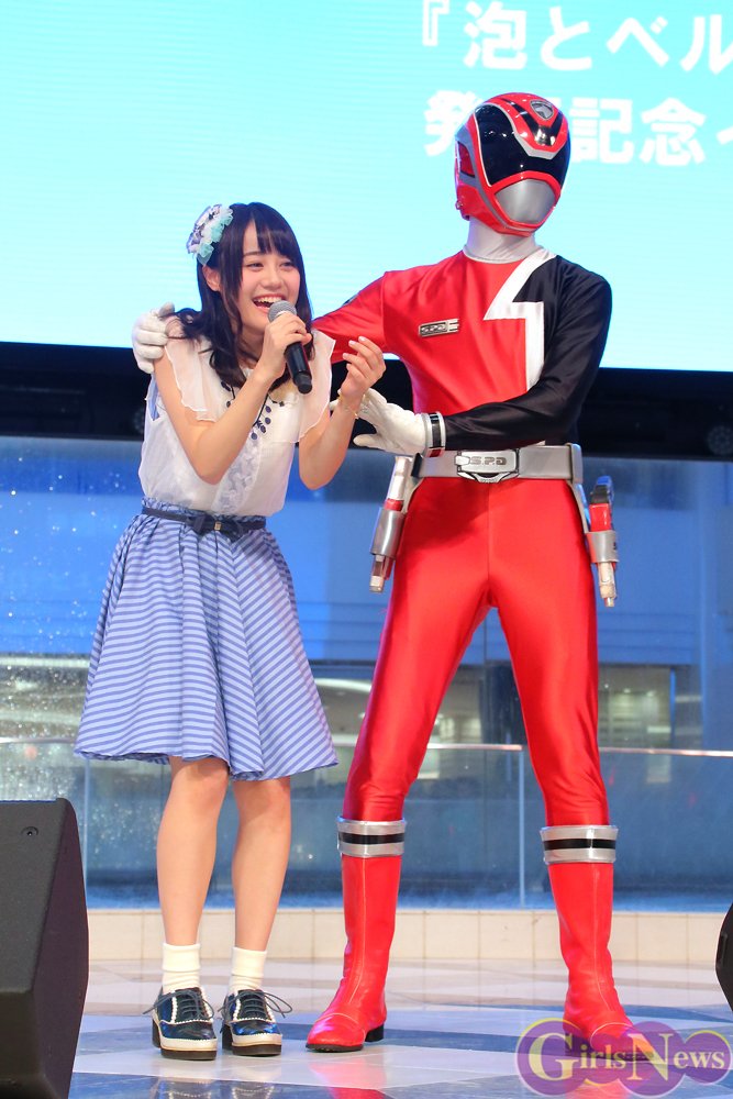 そこにサプライズで登場したゲストは、特撮ドラマ『特捜戦隊デカレンジャー』のデカレッド! かねてから戦隊ヒーローシリーズが大好きだという伊藤さんは、中でもいちばん大好きというデカレッドの登場に大きな歓声を上げ「泣きそう。もう泣いてますけど」大喜びした。まじまじとデカレッドを見つめると「いい面ですねぇ~」とうっとりし、固く握手をして、マスコミへの写真撮影に嬉しそうに応えた。