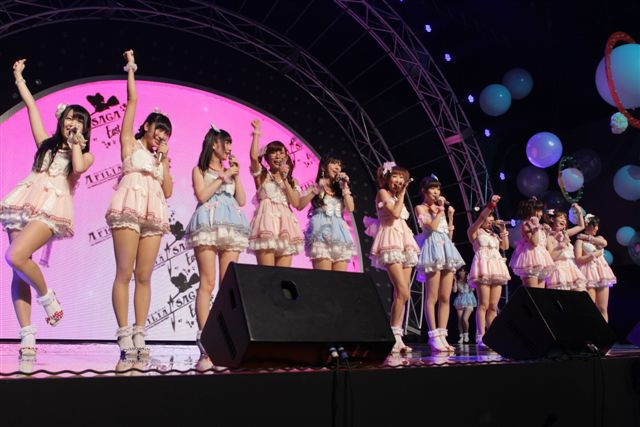 先月行われたTOKYO IDOL FESTIVALでは、アフィリア・サーガのメインステージ出演時間は朝一番の午前10時という早い時間帯であったが、会場は満員のファンで埋まっていた。アイドル戦国時代といわれる中で、声優・アニメ系の2次元ファンからも人気を集めており今年に入りファンが急増している。
