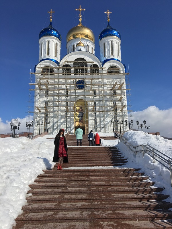12日にユジノサハリンスク内シティモールで2000人の観客の前で行われた「日本文化デー」に出演した上坂さんは、大学でロシア語科を専攻しており、流ちょうなロシア語で、自己紹介とサハリンの印象などを語った。