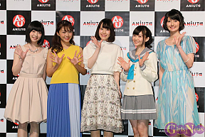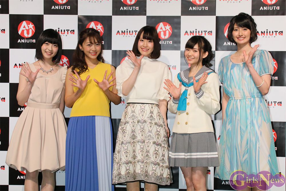 会見には、駒形友梨(キラキラ☆プリキュアアラモード)、鈴木みのり(マクロスΔ)、諏訪ななか(ラブライブ!サンシャイン!!)、三森すずこ(結城友奈は勇者である)、吉岡茉祐(Wake Up,Girls!)の人気作品でお馴染みの声優アーティストが登壇し、同サービスをPRした。