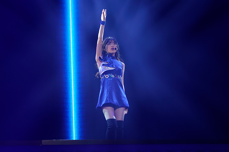 そんな石原さんがクールな表情でキメたのが『Ray Rule』から始まるダンスパート。4名の“夏織ダンサーズ”を引き連れてのパフォーマンスはスタイリッシュさと力強さを兼ね備え、映像内で泣き虫な一面を見せた石原とはまるで別人のようでもあった。そして『Blooming Flower』を歌ってライブ本編を締めくくる。