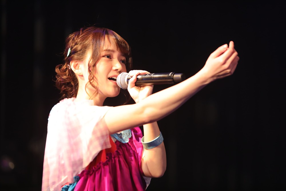 アルバムから、みんなと一緒に歌いたいと、掛け声で乗れる「smile!smile!smile!」をかわいいダンスをしながら披露する。と思ったら、そのまま「Dream On~遠い日のあの空~」を歌い上げ、雰囲気をガラリと変え会場を飲み込んだ。歌い終わると、「みなさん、一緒に歌えたー!上出来です!笑 ありがとう!」と会場に笑顔をふりまく。