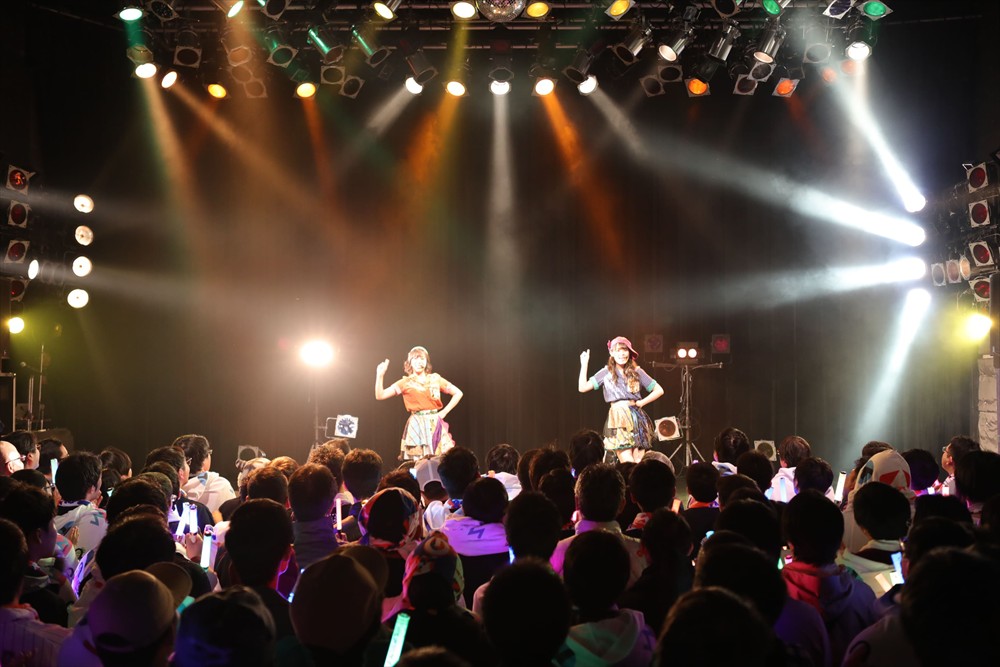続いては「オトノイロ」を初披露。会場はブルーと黄色のライトでいっぱいになる。そしてTVアニメ『けものフレンズ2』エンディングテーマ「星をつなげて」を披露。イントロが流れると、会場が一気に盛り上がり、みんながライトを振った。「オトノイロ」どうだったー?!」の質問に「サイコー―――!!!」と会場が湧き上がる。そして2人は「私達もライブやりたいね、単独ライブやりたい!」「そうだね!言ったら叶う方式だから、いっぱい言おう!」と今後の夢を語った。
