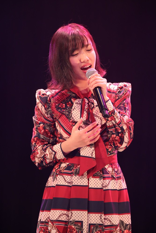 続いて、ソロ築田行子が登場し「Flashback」を披露。新しい赤い衣装はこの曲の大人な雰囲気にぴったりで、会場は一気に彼女に魅了される。