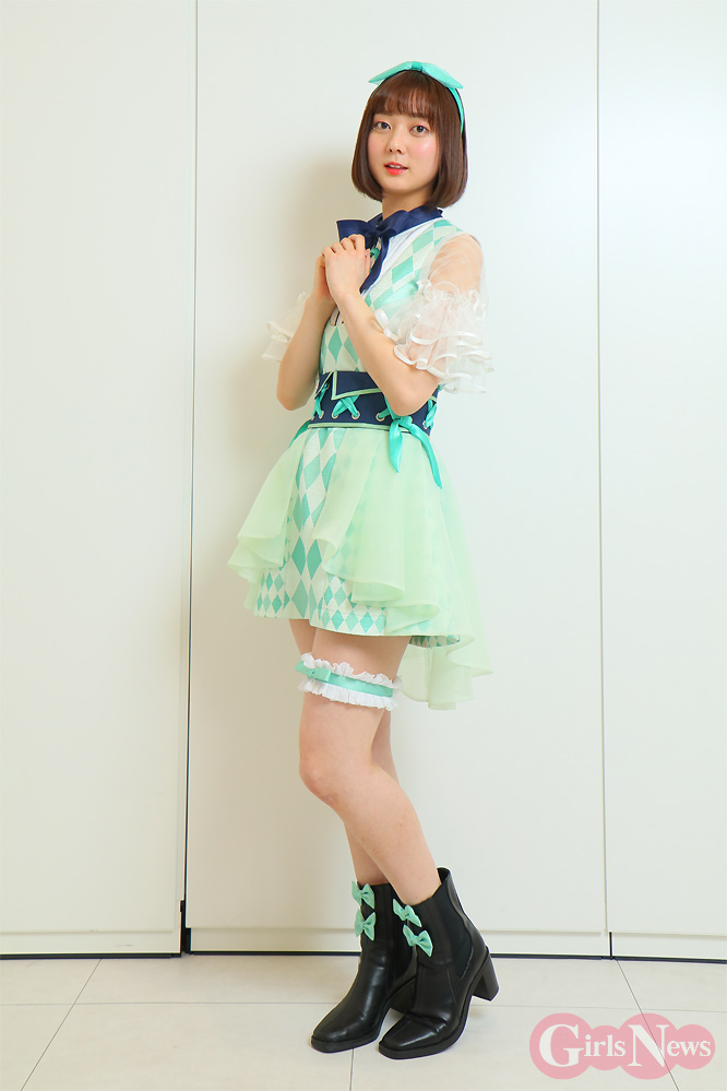 十二 れたすちゃんは、少し内向的で、すごく優しい、みんなの癒しキャラです。私はれたすちゃんほどの最強の優しさを持っていないし、内向的でもなくて、癒やしキャラというより、マスコットキャラ的な感じですかね。れたすちゃんと似てるところは、髪型が似てることぐらいなんですけど、れたすちゃんもしっかりとした芯をもっているので、そこに近づけたらいいなと思っています。