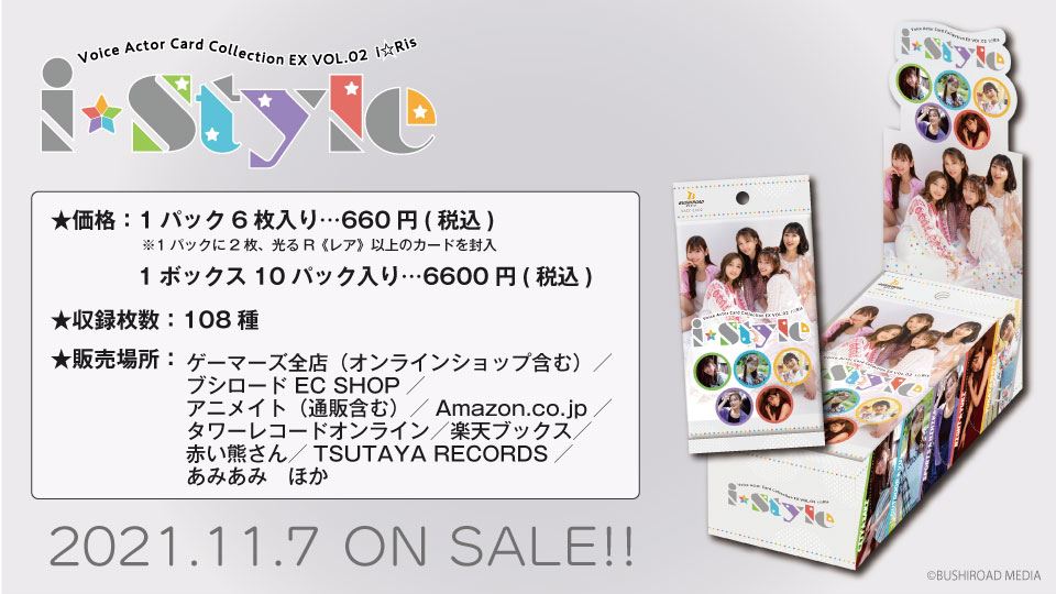 今回発売される『i☆Style』は、ブシロードメディアが贈る声優トレーディングカードシリーズ「Voice Actor Card Collection(ボイコレ)」より声優グループを起用したEXシリーズの第2弾。6テーマ、全108種のカードを収録している。全カードが本商品のための撮り下ろし写真を使用し、撮影には声優グランプリ編集部(主婦の友インフォス)が協力した。
