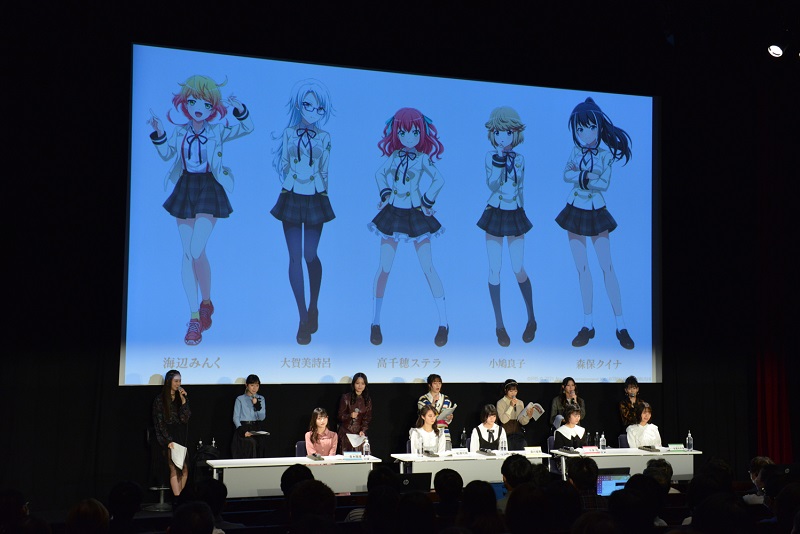 さらに、作品の新展開として、『シークフェルト音楽学院 中等部』として登場する5人の新キャラクターが発表され、青木陽菜(高千穂ステラ役)、松澤可苑(大賀美 詩呂役)、深川瑠華(小鳩良子役)、久家心(海辺みんく役)、佐當友莉亜(森保クイナ役)が登壇した。