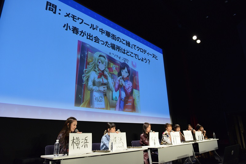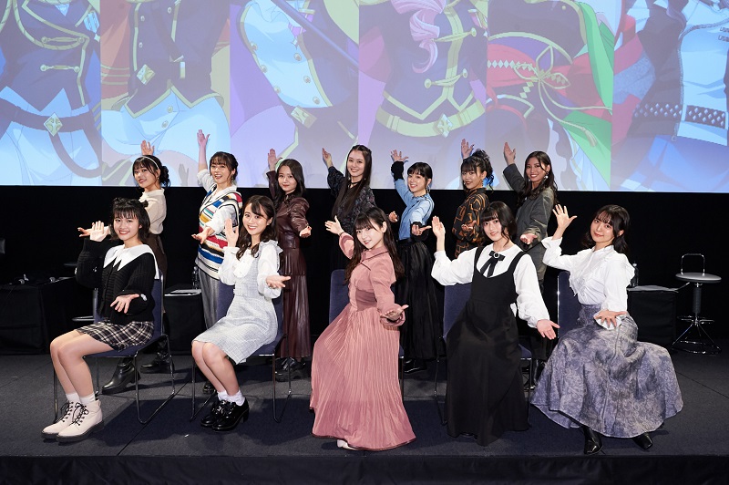 イベントにはまず、野本ほたる(雪代晶役)、尾崎由香(鳳ミチル役)、竹内夢(リュウ・メイファン役)、工藤晴香(鶴姫やちよ役)、倉知玲鳳(夢大路文役)、七木奏音(柳小春役)、相羽あいな(西條クロディーヌ役)が登壇。