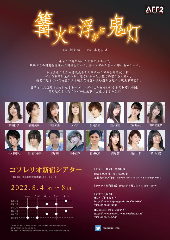 『けものフレンズ』 (フンボルトペンギン役)で声優としても活躍する築田行子が主演を務める舞台『篝火に浮かぶ鬼灯』が、8月4日(木)~8日(月)で上演されることが決定した。
