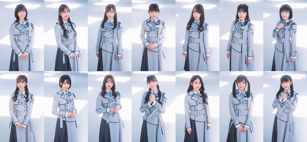 神奈川県・本厚木の神奈川工科大学内「KAIT広場」にて撮影されたアートワークは、グレーを基調にした制服に身をつつんだ14名のメンバーが、湾曲した地面と四角い陽の光が印象的な幾何学空間に佇む姿が写し出されている。