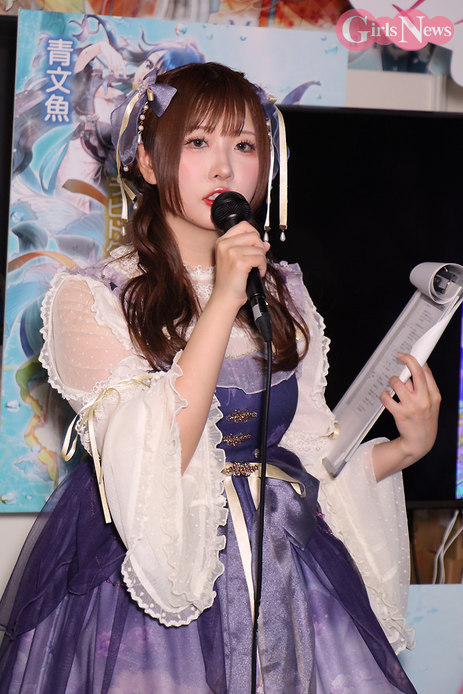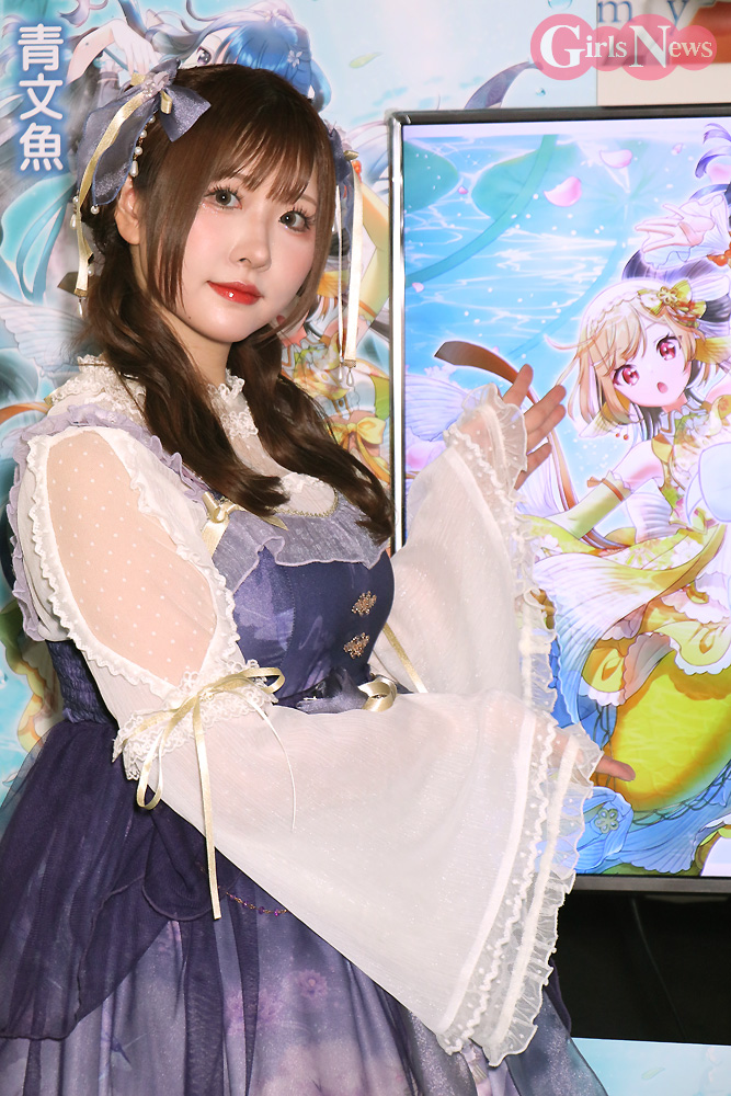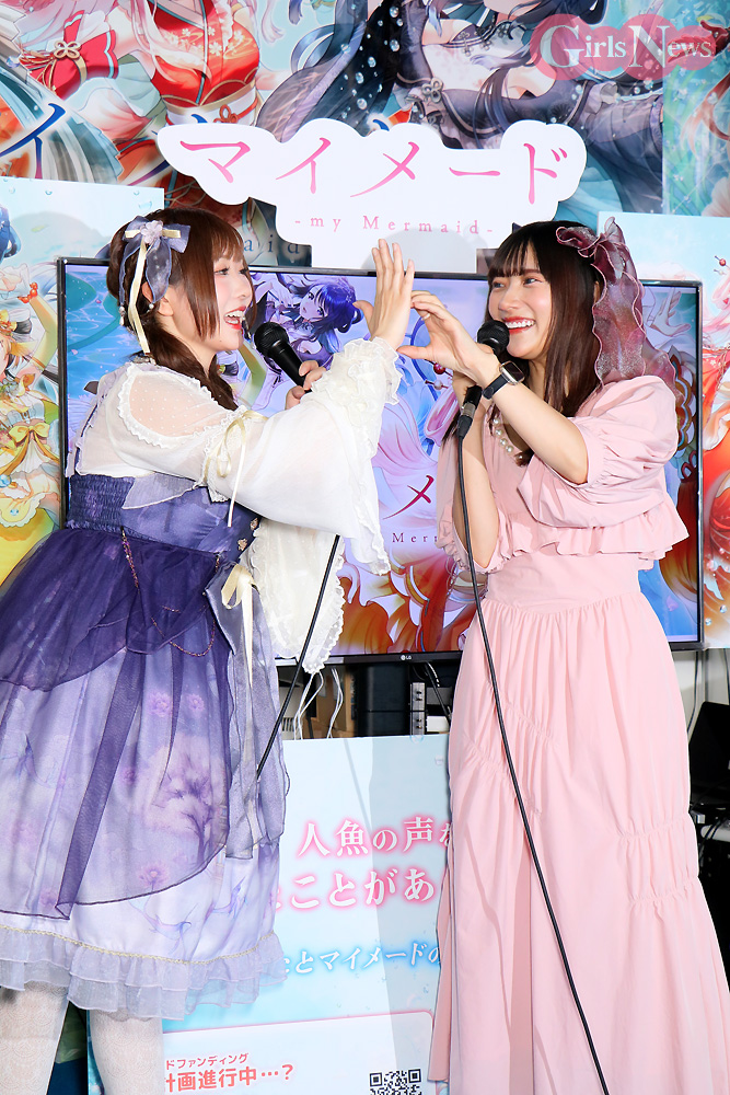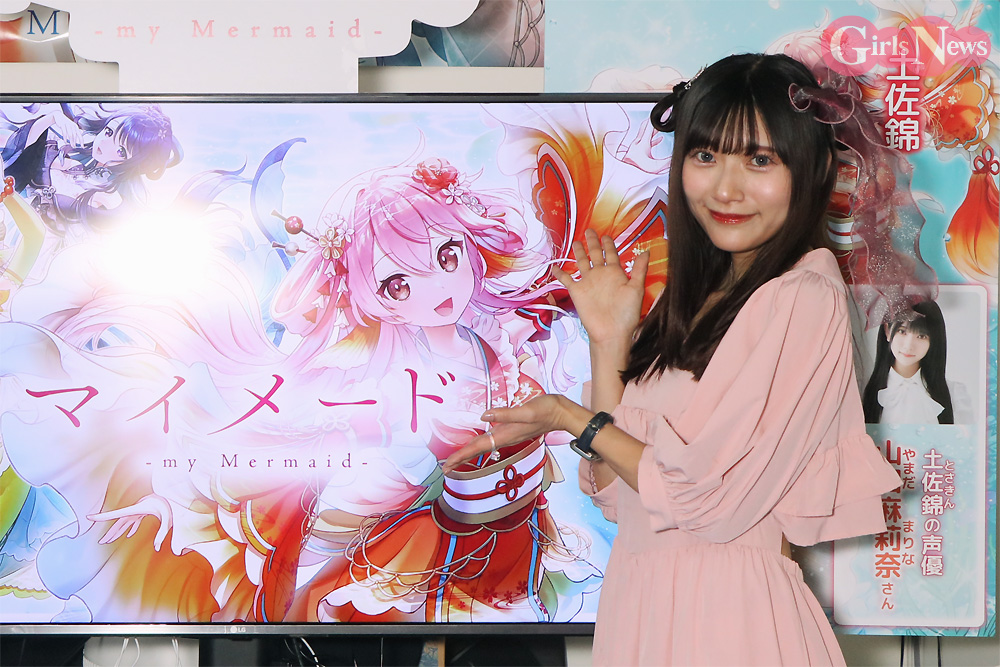 コスプレイヤーのすみれおじさん(紫花菫)が21日、幕張メッセで開催中の「東京ゲームショウ2023」にて新作ゲーム『マイメード -my Mermaid-』の発表イベントにMCとして出演。このゲームで土佐錦役を務める 元HKT48で声優の山田麻莉奈さんをゲストに迎えてトークを繰り広げた。