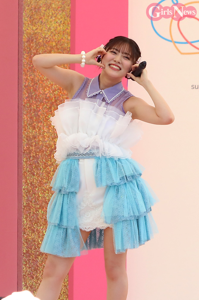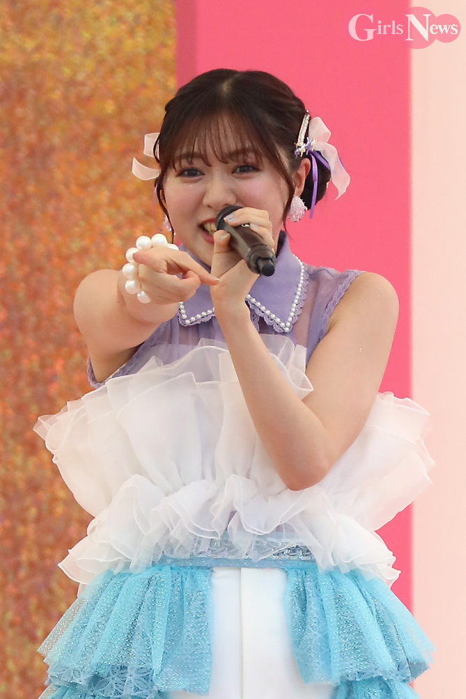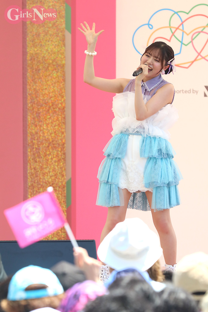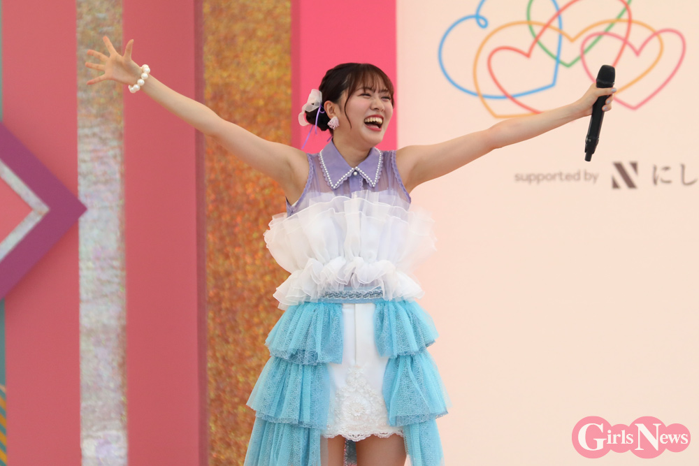 ミュージカルのような出だしで始まった『Welcome to Nanoland』を挨拶代わりに披露した堀内さんは、「すでに1曲目でも最高にスマスマのスマイルになっておりますね~!」と観客のハートをキャッチ。「10年ぶりにTOKYO IDOL FESTIVALに出演させていただいております。当時、さくら学院のステージをTIFで見てたよって方いますか?」と呼びかけると、いくつもの手が上がった。「ソロとしては初めてTIFに出演させていただいているので、 私の大好きなステージでみなさんと最高の音楽の旅へ出発したいと思います。みなさん、音楽の旅に出かける準備できてますか? 心のトキメキ爆発させる準備できてますか?」と客席を煽りつつ、2曲目『ハナビラペダル』を歌い上げた。
