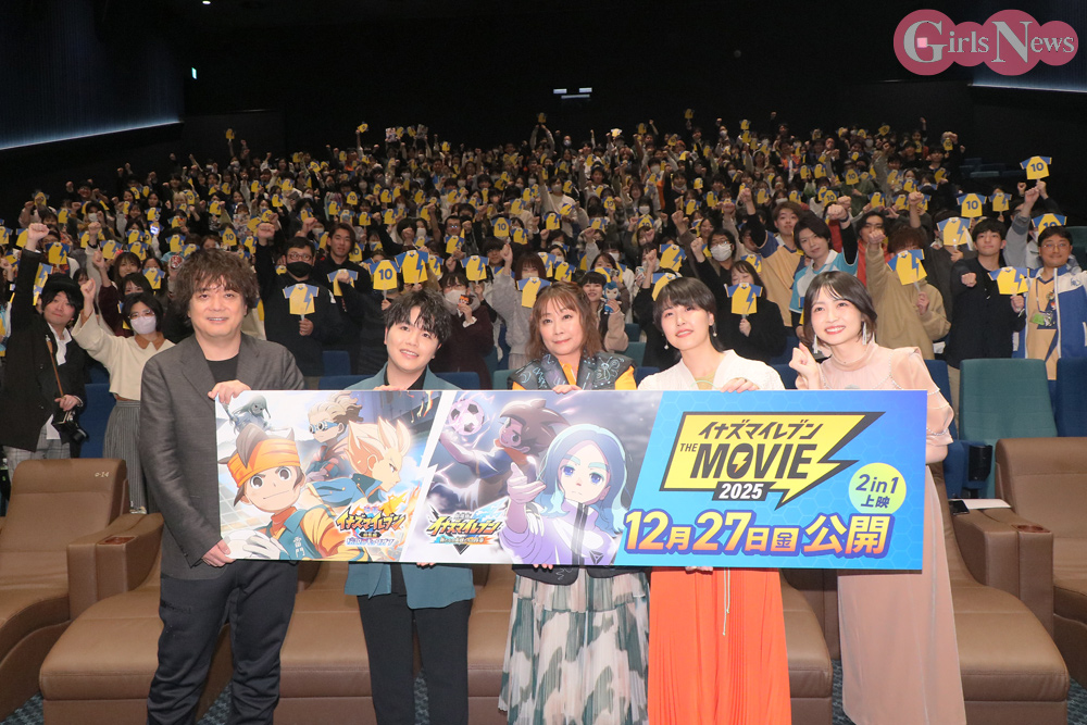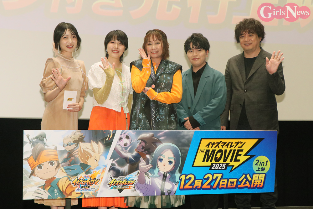 映画『イナズマイレブン・ザ・ムービー 2025』の先行上映イベントが23日、グランドシネマサンシャイン池袋にて開催され、出演声優の竹内順子さん、木間萌さん、小村将さん、総監督・脚本を務める日野晃博さん、そしてMCを務めた吉岡茉祐さんが登壇した。
