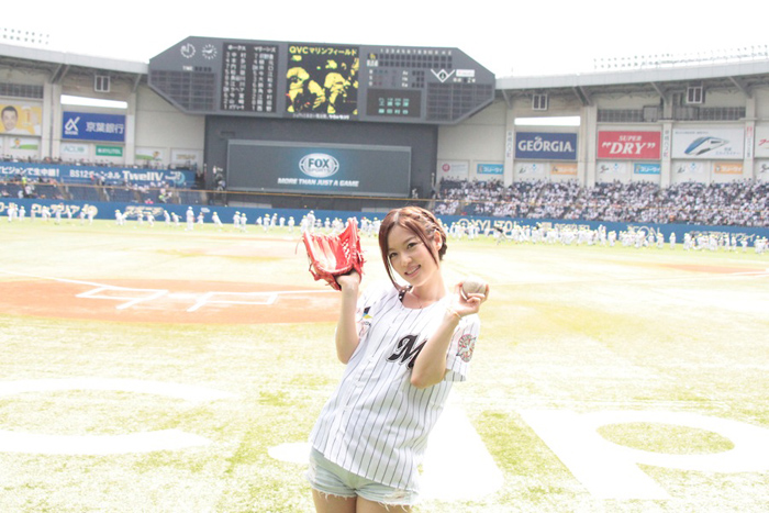 6月29日、声優・歌手として活躍する原由実が、千葉県のQVCマリンフィールドにてファーストピッチセレモニーを行った。