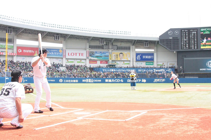 当日は、千葉ロッテマリーンズと福岡ソフトバンクホークスとの首位攻防戦という事もあり、多数の観客が詰めかける中、堂々とマウンドに上がり、ハラハラの投球で観客を湧かせた。